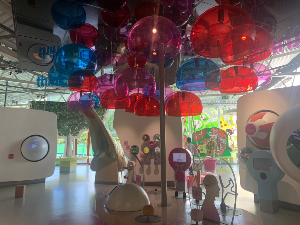 When we got back we stopped and had a play with some of the outdoor things. There was a lovely big sandpit there. They also had an entertainer outside performing magic and juggling. Next, we headed upstairs and went to the ‘All About Me’ section which was my favourite. There was a lot of fun things to do and look at. You could see how tall you are, get an estimate of what you will look like when you are older, and learn about how your muscles work.